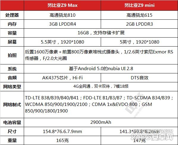 努比亚Z9 Max、Z9 mini分别搭载了高通骁龙810和骁龙615处理器,Z9 Max还采用了强大的3GB LPDDR4内存,再配合64位安卓5.0系统,实际性能表现值得期待。
