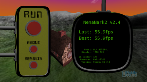nenamark2的3D渲染方面,红辣椒Note分数为55.9帧,相对于60帧的标准成绩稍有差距。