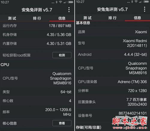 联发科使用了四核A7处理器,虽然并不先进,但你也许发现了,安兔兔检测是五核心手机,实际上亮点正在这里,还有一颗省点内核,可以有效保证续航。另外,图形核心使用了双核MaliT628,支持OpenGL ES3.0, OpenCL1.1, OpenVG1.1,也比红米2更胜一筹。
