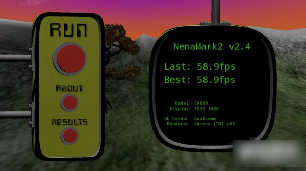 钮扣手机NenaMark图形跑分为58—59帧之间,跑分属于偏向高端级别,与高通801旗舰机相差不大,一般来说这个数值大于30,就可以流畅多数一般网络游戏需求,其达到了58分,满分为60分,图形性能也有着出色的表现。