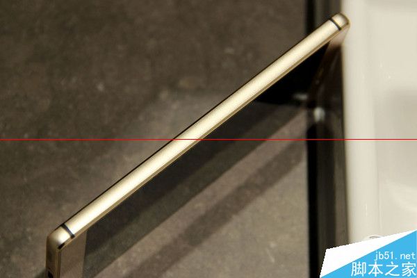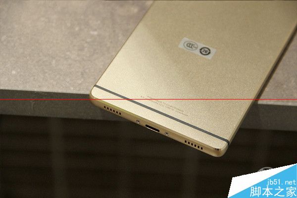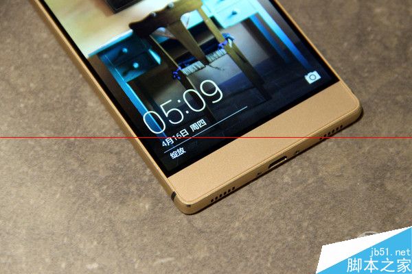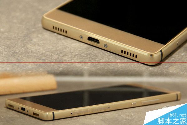 机身顶部并排着3.5mm耳机插孔以及降噪麦克,从这里可以看到侧面的圆弧状打磨曲线。从实际的握感来看,华为P8的握持感很好。这意味着华为P8在握着时不咯手,但又能够保证一定的摩擦力,这和机身四周温润的圆弧过渡是分不开的。