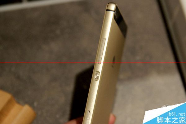 在正面整块玻璃周围,就是Unibody的金属切边包裹着向后延伸了。正如所有的Unibody全金属机身一样,华为P8也在边框上开了几个便于信号通过的“隔断条”。如果光从触感上判断,你甚至很难察觉到“隔断条”的存在,因为摸上去完全没有凹凸不平的感觉,这也证明了华为在打磨上的确下了大功夫。