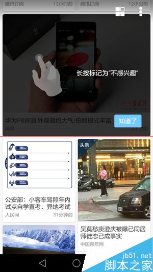 一直往左滑动到底,就是华为的订阅杂志:悦读。这个功能插件对于一些喜欢时刻关注行业资讯或者新闻的朋友来说非常便利。另外P8还加入了单手模式功能,具体操作如下: