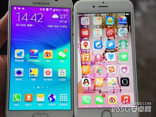 Galaxy S6采用的基于Android 5.0.2的新Touch Wiz系统,而iPhone则采用的是iOS 8.2系统。iOS与Android虽然分属不同阵营,但在近几年的迭代中也相互汲取了各自的优点,虽然仍有一些地方不太相同,但作为一个移动操作系统来讲,大部分基本功能都已经十分相似了。