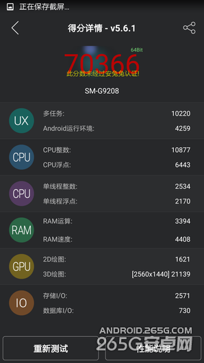 iPhone 6的安兔兔跑分为51596分,相当于目前旗舰安卓手机的水平,不过从它1GB RAM以及双核处理器的配置上来看,这样的得分可谓逆天,也不得不承认苹果在系统方面的优做的相当到位。三星S6的测试总成绩是70366分,将其他安卓机型远远甩在身后。虽然也可能是Antutu本身的问题,但也间接说明了Exynos 7420的厉害之处,相信这也和Galaxy S6采用了LPDDR4内存有关。