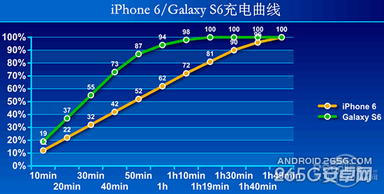 此次iPhone 6与Galaxy S6的充电续航测试我们依然延续Galaxy S6 edge评测中的充电续航测试规范,以下是我们测试得到的结果: