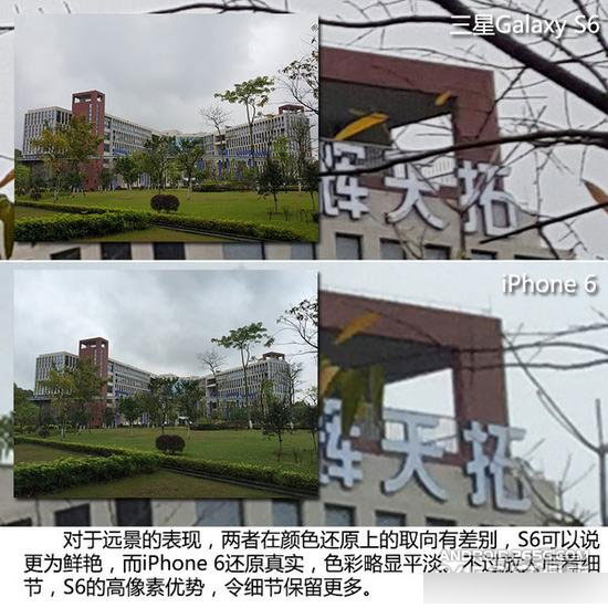 从对比样张来看,在色彩表现、细节表现方面两者很接近。花草对比那组图片可以看出两者不同的白平衡取向,S6仍然偏艳丽,而iPhone还是比较平淡和现实。iPhone依然有着出色的表现,不过S6的表现也是令我们感受到惊艳。手机拍照的世界里面,再也不是iPhone的孤单天下,三星S6已具备超越的能力。