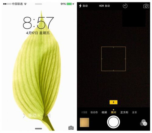 但在设置锁屏密码后,从锁屏状态下滑动开启相机,两者实际体验有很大的不同。iPhone6依然允许你打开相机进行拍照,点击图库也只能显示你刚刚拍摄的部分,要看更多照片,你必须输入密码才行。