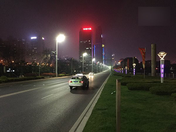 夜景样张对比:来到夜景随手拍环节,两者之间反而出现了鲜明的反差,iPhone6相对来说曝光量控制的更低,大家注意路灯以及第二张图片上的霓虹灯字样,两者的区别可以很明显的看出来。相对来说,努比亚Z9 Max的曝光量显得稍稍有些过,需要使用独立测光功能,对其进行一定的修正。在手持状况下,有着F2.0光圈值的Z9 Max ISO感光度提升更大,快门速度反而更慢,噪点控制上略吃亏,只能使用手动模式并结合三脚架进行弥补了。