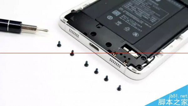 c、将上部背板和下面扬声器单元的固定螺丝卸掉,取下两部分之后,就可以看到手机内部全貌;