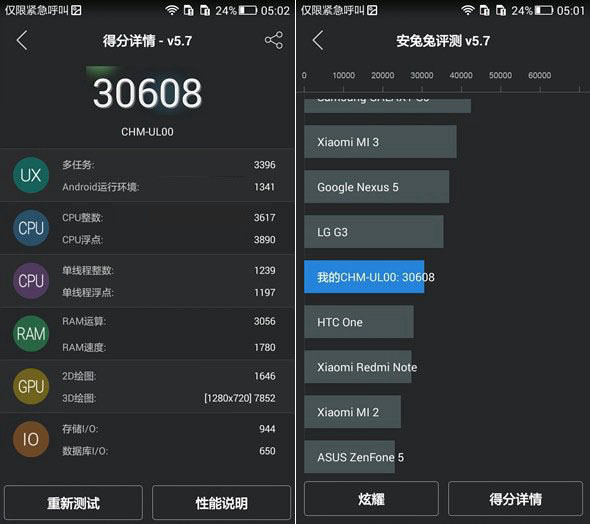 荣耀4C安兔兔跑分