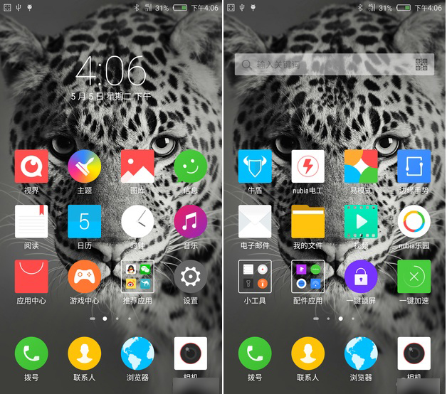 至于一键加速功能,可以通过一次简单的点击在短时间内快速清理nubia Z9手机内存,从而加速流畅度,简单快捷而实用。此外“一键锁屏”的功效类似,同样是点击即可实现快捷锁屏操作。这样的“一键”操作相比繁琐的各种步骤之后才能达到目的的确能够大大提升使用效率。