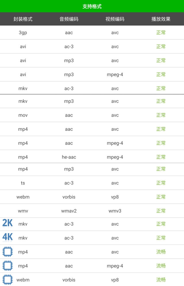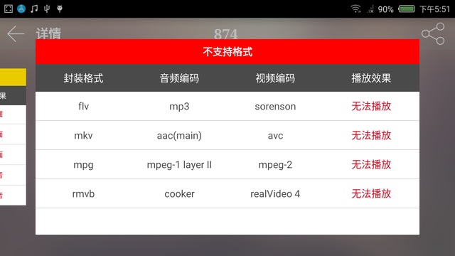 nubia Z9不完全支持的音视频格式组合(可通过第三方播放器软解播放)