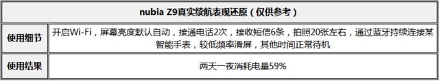 nubia Z9搭载的是2900mAh 700Wh/L高能量密度电池,从笔者的实际使用来看,其续航表现还是很不错的。以下是大概的真实使用情况和相应的耗电情况,大家可以根据自己的日常使用情况参照对比。整体来说,对于两天左右的一般频率使用,nubia Z9基本能够满足。