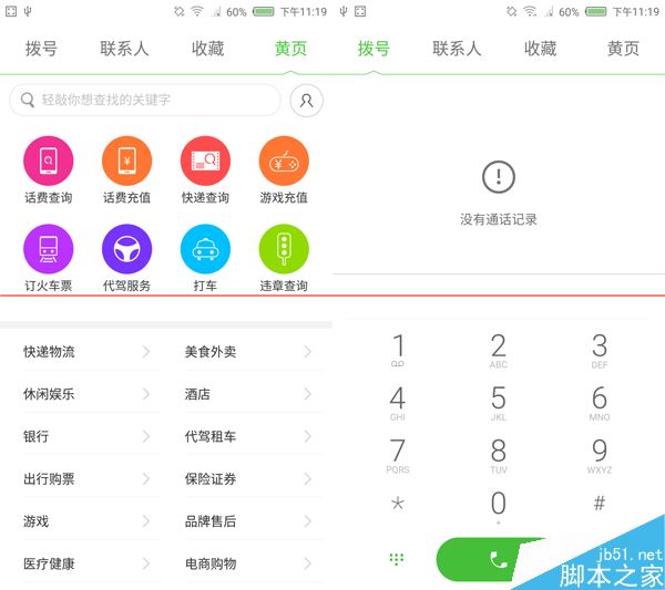 nubia UI 3.0.8还增加了联系人黄页模式,点击联系人之后会看到黄页菜单,常用的话费查询、话费充值、打车、订票等服务都有所集成,但如果想要使用这个功能需要登录你的个人nubia账户才行。