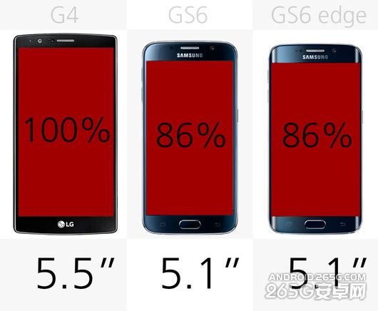 相比较而言LG G4的屏幕尺寸要比Galaxy S6大16%。