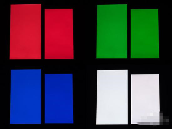 三原色还原中,可以看到Z9 mini的色彩饱和度要明显比乐视手机1高,而乐1的色彩还原比较忠实。