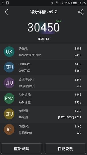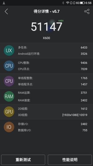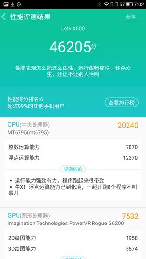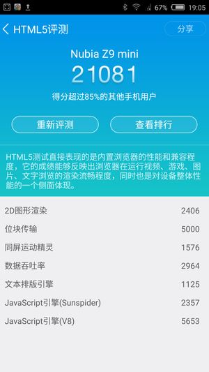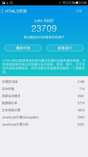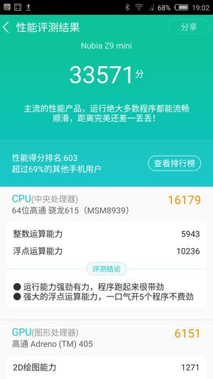 在不看跑分之前,从整体的硬件配置来看乐视手机1是要略高于Z9 mini的,而从跑分结果来看也是如此。乐视手机1由于有着更好的CPU和更大的内存,在性能方面要领先Z9 mini。当然,Z9 mini的性能也是十分优秀的,达到了主流中端手机的水准,只是和乐视手机1比起来的话性能还是有些差距。