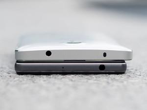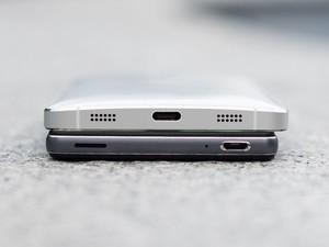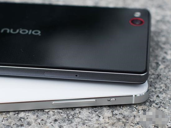 Z9 mini的右侧分别是音量和锁屏键,左侧是SIM卡插槽,而比较有趣的是,Z9 mini和乐视手机1的按键设计刚好调转了过来。还有一个不同就是,乐视手机此次是专门配备了一颗独立的静音快捷键,这个设计和苹果比较类似,可以很方便地调整情景模式。虽然Z9 mini和乐视手机1均支持双卡双待功能,不过Z9 mini采用的是nanoSIM卡,而乐视手机1是通用性更强的microSIM卡设计。