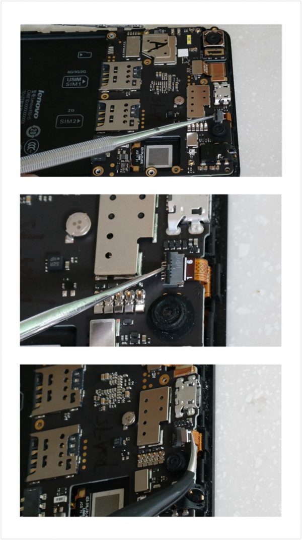 7、拨开后置摄像头链接排线卡扣