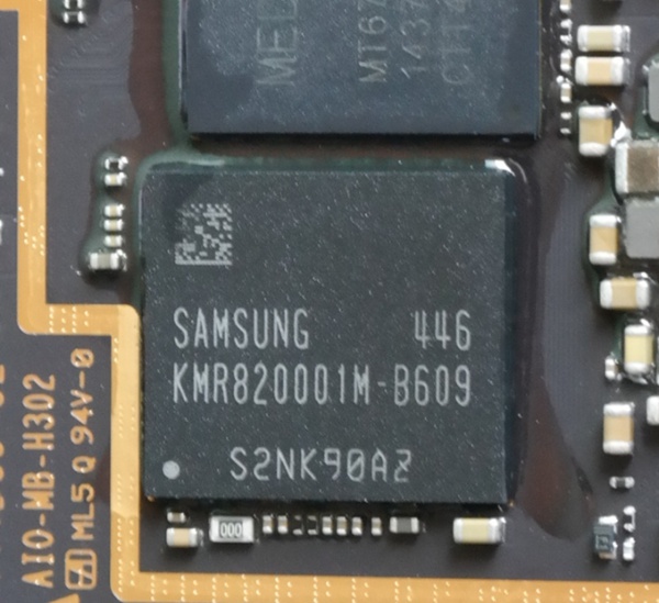 内存芯片采用三星的KMR820001M-B609的新一代的EMCP内存解决方案。16GB ROM 和DDR3的 2GB RAM二合一,内存频率1600MHZ,单通道.且EMCP方案因为有内建的NAND Flash控制晶片,可以减少主晶片运算的负担,提供CPU读取数据的效率。