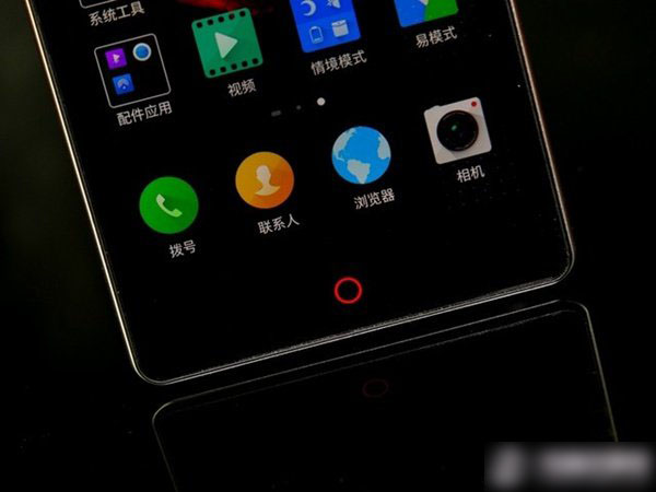 nubia Z9 mini的屏幕正下方依然采用努比亚血统的红色圆圈Home键,且左右的返回键与选项键也仍旧是隐藏式设计,用户可以调整这两个按键灯的亮度,也可以选择按键灯是在触摸时亮起、或是始终保持熄灭状态。
