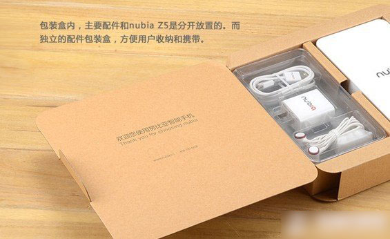 包装盒内,主要配件和Nubia Z5是分开放置的而独立的配件包装盒,方便用户收纳和携带。