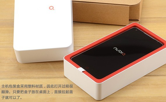 外观方面,Nubia Z5包装盒上,覆盖了一次性薄膜,可以有效保障用户得到全新的机器。另外,包装盒上除了LOGO,并没有其他装饰。简约之余,也减轻了环保回收的成本。