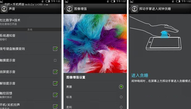 Nubia Z5还有很多使用的功能,例如打开杜比音效可以让外放更动听有力,图像增强可以获得更艳丽的显示画面,贪睡模式可以让用户不用看屏幕就能关闭闹钟。