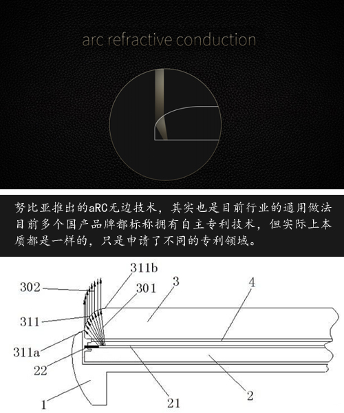 屏幕的最核心部分就是液晶显示屏,而液晶屏也确实是由“液态的结晶”组成,所以它具有液体的流动性,同时也拥有晶体的排列性,大体物质形态是介于液态和结晶之间。所以为了防止液晶漏出,屏幕BM区、胶框区、导电隔层等均都是无法避免的,否则在物理上没有外力和磁力来保证液晶屏的正常工作,所以实际上屏幕边框是目前行业技术条件下客观存在的事实,真正的无边框设计并不存在,而这也是我们以“无边框理念”取代“无边框设计”的主要原因。