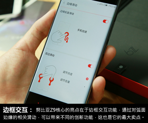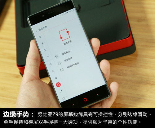 关于无边框的交互功能,实际上它是努比亚Z9这款手机的核心亮点部分,一会我们将花大篇幅来说明下这项功能的使用和真实体验。