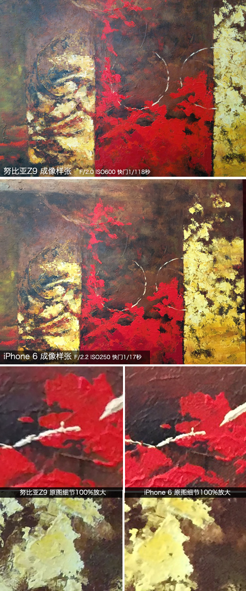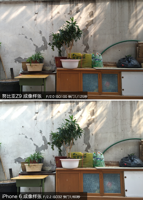 实际上努比亚Z9的相机表现和之前的Z9 Max相差无几,毕竟二者的相机硬件几乎一致(Z9仅增加光学防抖),在此前我们就详细对比过Z9 Max和iPhone 6的拍照能力,二者可谓各有千秋。那Z9是否会有新的突破?能否击败iPhone 6?对此我们也进行了对比。