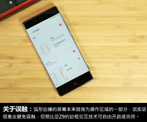2、努比亚Z9的无边框手势操作会不会很容易误触?这个问题在无边框部分其实我们有很仔细的分析过。老实来说,误触是没有办法避免的,毕竟弧形边缘的手势操作区本来就是屏幕的一部分,你在操作时有意无意肯定会碰到。但努比亚的解决办法是,这个FiT边框交互技术是可以自己选择开启或者关闭的,某些比较误触的功能你可以选择关闭不用,但某些比较使用的功能还是建议开启的。