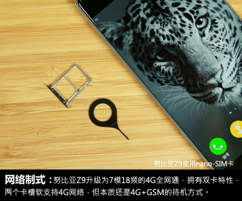 5、努比亚Z9还是4G全网通吧?全网通现在已经是努比亚的一个核心卖点了,所以努比亚Z9依然还是全网通,并且升级为7模18频制式,支持移动/联通/电信各自的4G/3G/2G网络,拥有双卡双待的特性,两个卡槽都软支持4G网络。