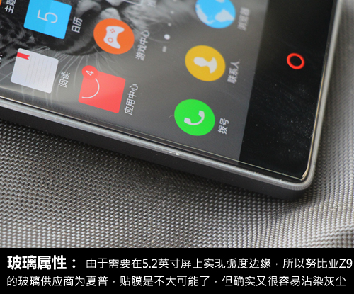8、努比亚Z9是不是使用了康宁大猩猩玻璃?还能贴膜么?关于努比亚Z9是不是使用了康宁大猩猩玻璃,这点其实我们也比较疑惑。在多次和努比亚工作人员沟通后我们得知,由于努比亚的屏幕为5.2英寸,且需要做到弧度边缘,所以努比亚Z9正面的玻璃供应商为夏普,属于特殊定制的玻璃产品,应该和普通的康宁大猩猩有差异。