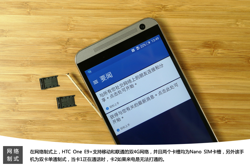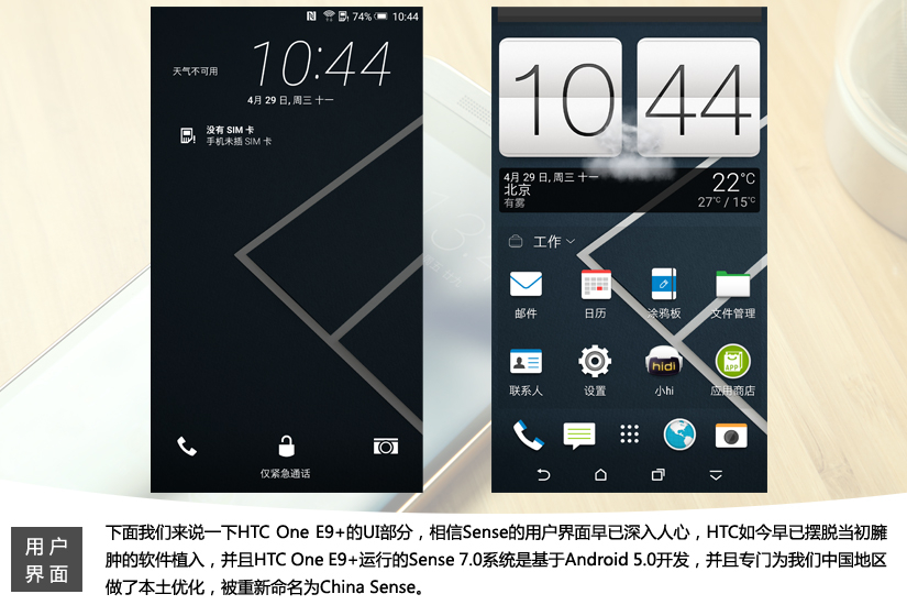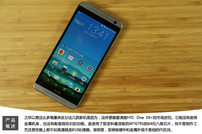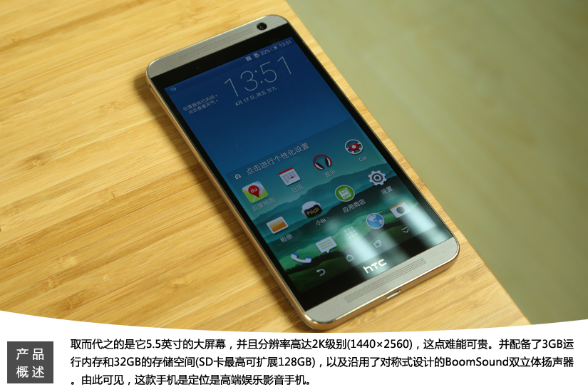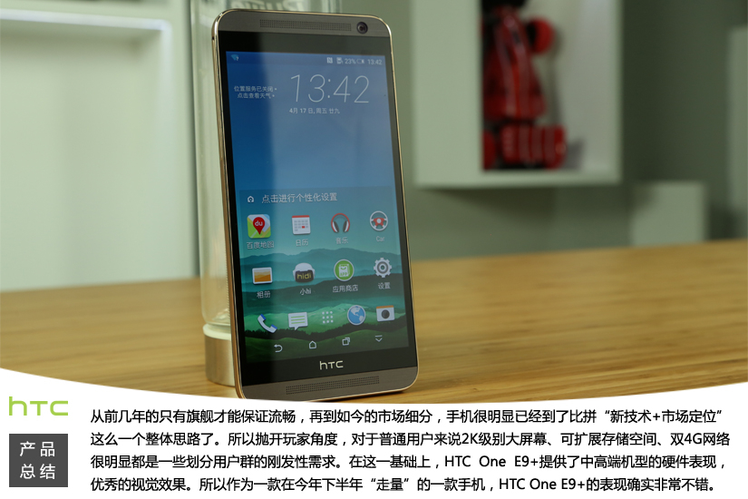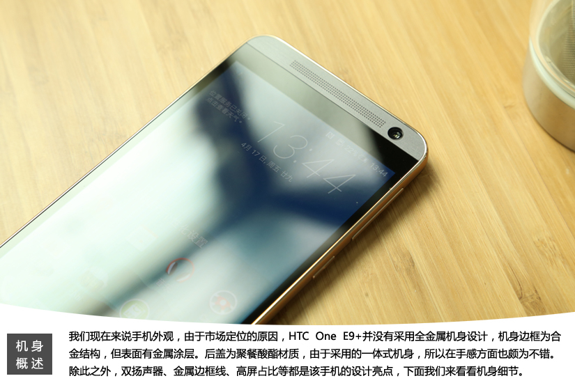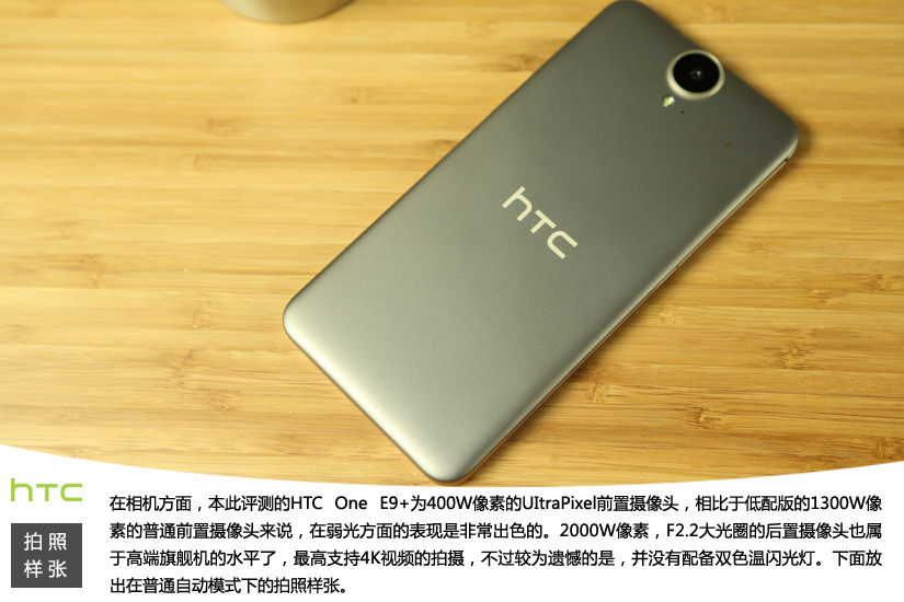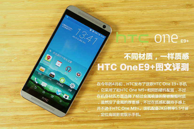 在4月初,HTC发布了这款HTC One E9+手机,它采用了和HTC One M9+一样的配置,不过在机身材质上却选择了金属喷砂工艺的碳酸聚酯材质,虽然没有了金属的厚重感,不过在握持感上依然不差,该机配备了5.5寸2K屏屏幕,定位高端影音旗舰机。