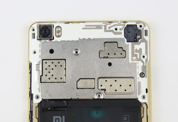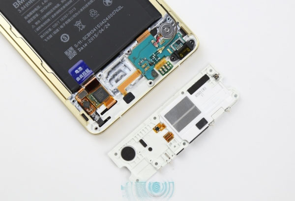 在副板上连接着震动马达,不过这个马达震动强度并不强,在小米Note标准版的时候这个问题就被不少用户吐槽过。