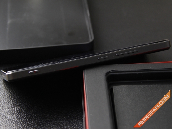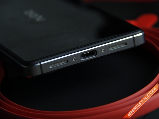 nubia Z9的顶部从左到右分别是该机的3.5mm耳机孔、降噪mic以及红外线灯。与其相对应的,底部是该机的外置扬声器。nubia Z9底部的设计与iPhone 4类似,双扬声器排放在Micro USB的两侧,整体的秩序感很好。该机的右侧是音量调节按键、电源按键以及拍照按键,它们从上到下依次排列。这几个按键的手感适中,键程较短,反馈明显。按上去相当的舒服。此外该机的拍照按键还做了间断处理,操作如同真实相机一样。该机左侧上部是SIM卡插槽,全网通的特性就不用机锋君多说了,需要注意的是该机的两个卡槽都是nano卡,如果你是Micro SIM卡就需要去营业厅更换小卡。