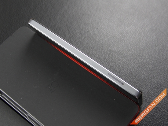 nubia Z9在的边框设计也是十分的用心,边框两侧都进行了倒角处理,所以看上去非常的精致。需要注意的是之前提到了nubia Z9采用了点胶技术来对前面板进行了保护,同样的采用2.5D玻璃的后面版一样需要保护。所以在后盖与边框之间还有一层保护层,所以该机的后盖并非是直接贴在中框上面的。