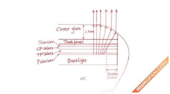 小结:这样巧妙的设计确实能带来无边框效果,但是它现在还不成熟,所以缺点也是必不可少的。最平常的缺点就是在屏幕的边缘你会看到RGB三原色的细小条纹,这是折射之后不可避免的问题。当然了,如果你不仔细看的话,是看不出来的。还是那句话,平常人使用没任何问题,但绝对的完美主义者请慎入。