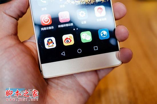 P8一样没有使用电容式按键的设计,而是照样运用了屏幕内虚拟按键,这使得屏幕内的部分区域被按键所占用,并且机身下方也有了双下巴的古怪观感,不 过我在设置中依旧看到了“灵犀一指”的选项,也就是说华为会在随后推出适配P8的灵犀一指贴膜,从而能够使用下巴的区域来作为按键区域使用。