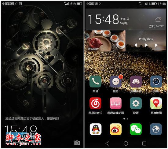 EMUI3.1基于Android5.0系统二次开发,华为P8是首个搭载该系统的硬件产品,可能是由于风格的差异,EMUI 3.1的软件UI并没有采用标准Metral Design,而是坚持了EMUI上一代的风格。图标中仍然保留了大量立体的元素,但如果你不喜欢,华为的主题功能依旧开放,各种不同类型的搭配可以让你 选个够。