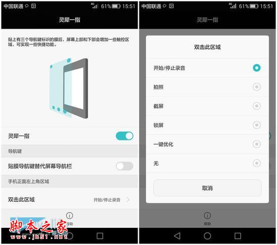 相比语音来说,智能截屏就好玩儿多了,使用指关节双击屏幕就能实现全屏截图,而使用指关节在屏幕特定区域画一个圈就能进行局部截图了,这一操作比长 按电源键+音量下更为方便,也算是P8系统的一个小亮点。除此之外,虽然P8的屏幕只有5.2英寸,但是华为还是保留了倍受好评的单手模式,按住Home 键向左向右滑动就能呼出这一功能,如果你认为P8太大的话,这一功能就是为你准备的。