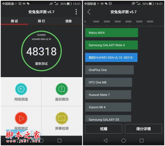 华为P8同时还配备了3GB运行内存,开机后实际可用的运行内存大约在2GB以上,得益于Android5.0进步的内存管理机制,P8的拖动、切 换非常迅速,没有任何的滞后感,所以我并不打算对其进行跑分了,反正对我来说,我不需要知道它能跑多少分,只要用起来不会卡就行了。
