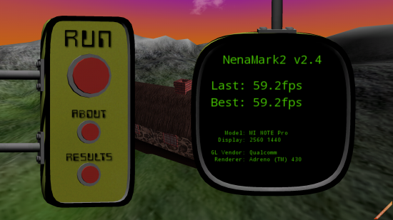 NenaMark2是一款用于Android设备的硬件加速基准测试程序,通过演示一款实时渲染的画面来对手机的图形能力进行测试,包括反射、动态阴影、曲面参数、复杂光线模式等内容,需要Android 2.0以上系统和OpenGL ES 2.0支持。