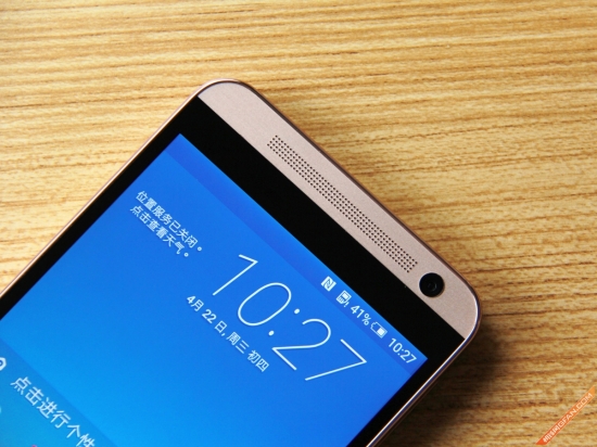 5.5英寸的屏幕看起来还是比较舒服的,相比小屏手机看起来不会那么费眼睛。额头部分配备的是BoomSound扬声器,支持杜比音效。1300万像素的前置镜头看起来还是规格挺高(小编手里这台是搭载UltraPixel技术的400万像素前置规格)。不过扬声器下方的这个大黑边是个什么鬼?宽度略微感人啊,这个黑边内集成了距离/光线感应器以及呼吸灯,在充电时呼吸灯会亮起。
