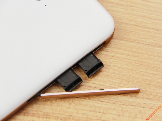 支持双卡双待单通的移动联通2/3/4G卡托,卡托旁边是Micro SD存储卡扩展槽,最高支持128GB容量的扩展。