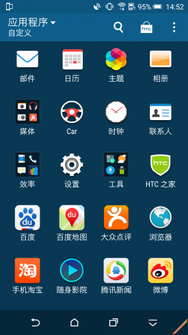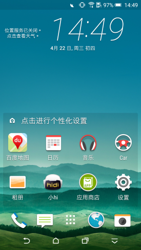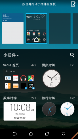 HTC E9+在系统方面采用了基于Android 5.0定制的HTC Sense UI 7.0,Sense UI 7.0加入了一些新的功能,例如支持用户自定义主题/自由制作主题以及情景式主画面小工具,能够根据用户的位置进行更换这个画面中的应用程序,此外,如果你觉得虚拟按键会占用屏幕空间,那么在Sense UI 7.0中虚拟按键也可以隐藏。其实在UI方面与M9没有太大差别,更详细的介绍请移步(HTC One M9评测之系统部分),接下来,就请各位通过多组系统截图来了解一下Sense UI 7.0。