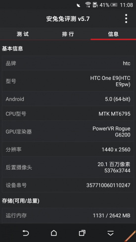 评测开始之前,先来看一眼HTC E9+的详细参数:5.5英寸2K显示屏(分辨率2560x1440像素)、前置1300万(400万像素UltraPixel)+后置2000万像素摄像头规格、搭载联发科最新Helio X10芯片的MT6795八核处理器并辅以3GB运行内存、支持移动联通2/3/4G网络。