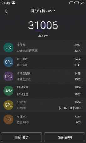 总结:通过这三项测试,ZenFone2在跑分以及游戏上小胜MX4 Pro,所以本次的性能对比最后胜出的就是华硕的ZenFone2。当然,MX4 Pro的性能也不差,其实机锋君最开始测试的时候是非常纠结的,在性能严重过剩,安卓系统碎片化逐渐减小的今天。各家手机的性能体验差距已经是微乎其微,如何能在系统体验上下功夫,才是每一个厂商日后需要考虑的事。